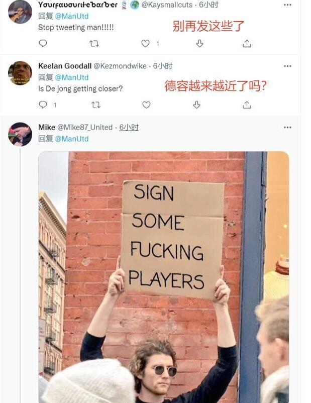 JRS直播网06月26日讯 目前,全球夏窗已经开启,但是至今曼联仍未签下任何一人,球迷对俱乐部的引援进展越发不满,在官推下强烈要求买人。