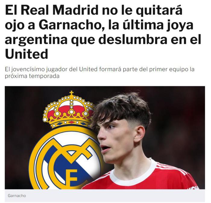 JRS直播网06月22日讯 据西媒报道,曼联左边锋亚历杭德罗·加纳乔在阿根廷队得到梅西的认可和称赞后,皇家马德里正在密切关注其情况,可能伺机从红魔挖走他。