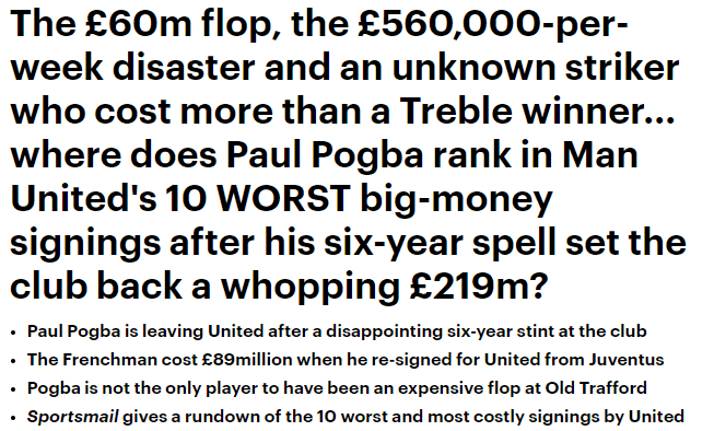 JRS直播网06月03日讯 《每日邮报》今天盘点了曼联英超时代最糟糕的十笔引援,桑切斯、迪马利亚和博格巴分列前三。