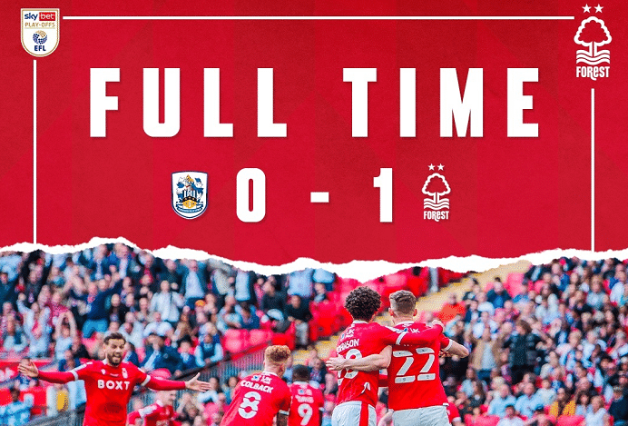 诺丁汉森林附加赛连续击败谢菲尔德联和哈德斯菲尔德,时隔23年重返英超;