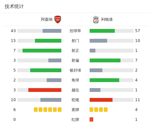 JRS直播网讯 :北京时间2月5日英超 联赛 第23轮,阿森纳主场对阵利物浦。上半场,萨卡觅得良机头球顶疵,加克波抽射远角稍偏,哈弗茨推射被挡后萨卡补空门得手,加布里埃尔低射被扑,迪亚斯造成加布里埃尔自摆乌龙;下半场,琼斯兜射远角打偏,阿利松和范戴克配合失误送马丁内利空门大礼,麦卡利斯特打门擦柱而出,科纳特两黄变一红被罚下,特罗萨德破门锁定胜局。最终比分3-1。