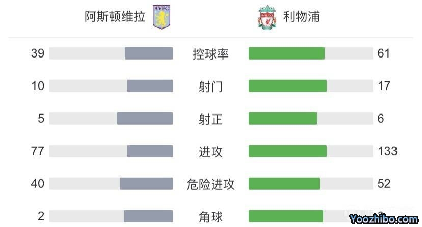 全场比赛结束,最终利物浦2-1逆转击败阿斯顿维拉。