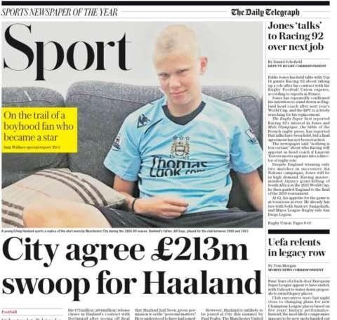 《电讯报》称,哈兰德将和德布劳内以及格拉利什一样,成为曼城薪水最高的球员之一,但远低于英超最高薪C罗(周薪77.5万)。