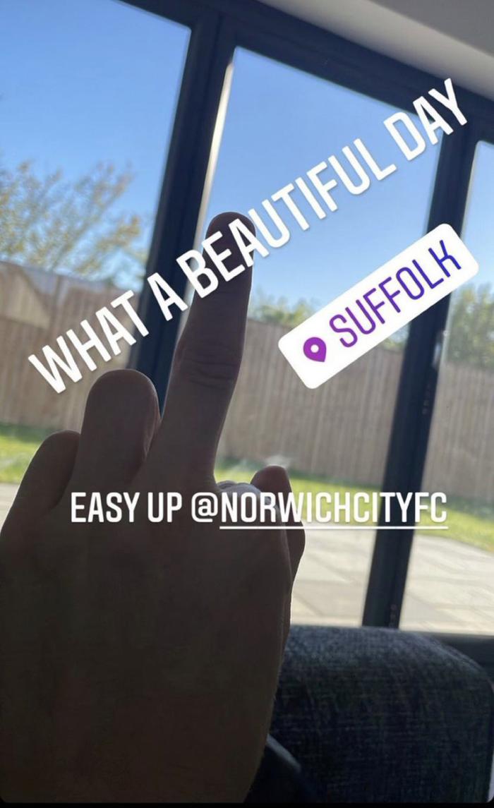 而威廉姆斯在「Instagram」上发布了一张自己竖中指的照片,并且表示:「天气多么美好,轻松一点,诺维奇。」