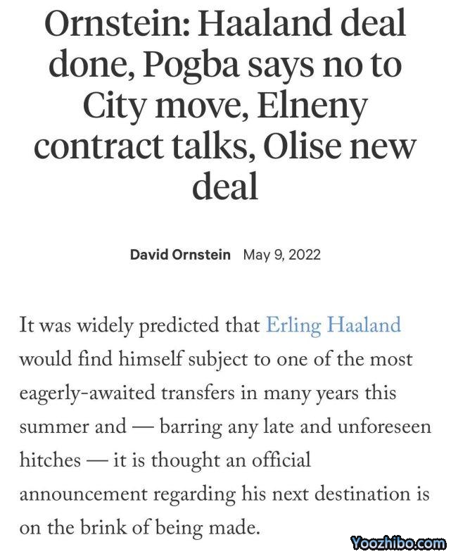JRS直播网05月09日讯 ,来自外媒TA知名记者David Ornstein的最新消息,挪威天才哈兰德转会曼城的交易已经完成,有望本周之内就确认并且对外宣布。