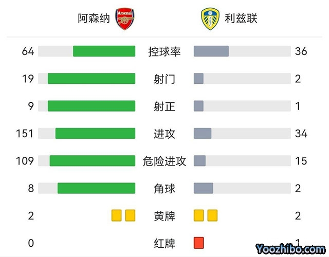 全场比赛结束,阿森纳2-1击败利兹联。