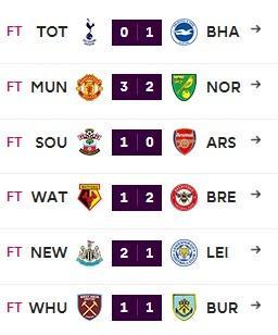 曼联在本轮联赛中3-2击败诺维奇,而第四名的热刺主场0-1不敌布莱顿,第六名的阿森纳客场0-1输给南安普顿,西汉姆则1-1战平伯恩利。