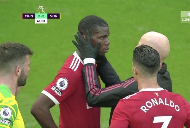 在曼联与诺维奇之战,祸不单行的博格巴不仅心灵受伤,身体也遭到队友马奎尔的误伤。在争夺角球时,曼联队长一个怪异的蝎子摆尾,踢中了博格巴的脑袋。