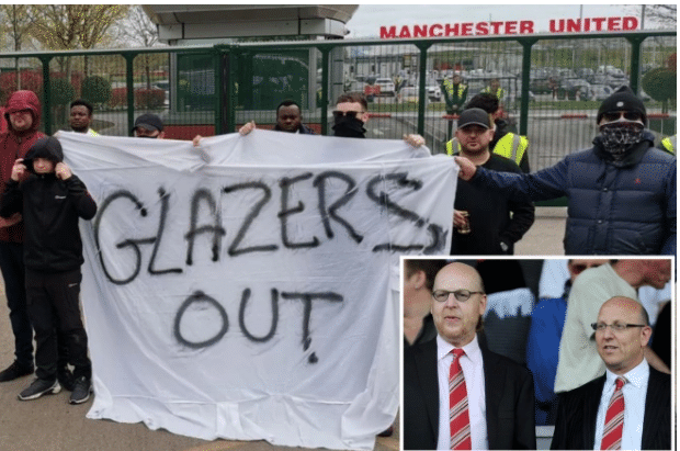 大约30名球迷手拿写着“耻辱,不配曼联球衣”和“格雷泽滚蛋”的横幅,并燃放烟火,在卡林顿基地外抗议球员和老板。