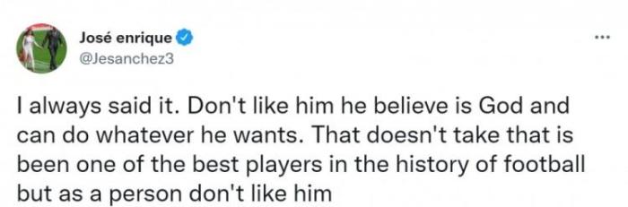 JRS直播网04月11日讯 利物浦旧将何塞-恩里克日前在推特上谈论C罗摔球迷手机一事,他表示C罗以为自己是上帝。