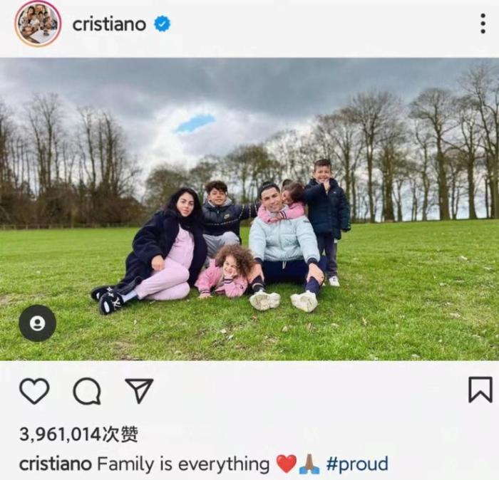 一家六口!C罗晒全家福:家庭就是一切