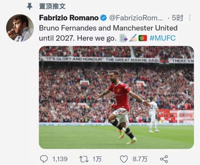 罗马诺:B费和曼联续约至2027年