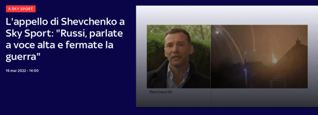 JRS直播网03月17日讯 ,45岁的金球先生舍甫琴科接受了天空体育的采访。而采访中,舍瓦谈到了祖国乌克兰和老东家切尔西。