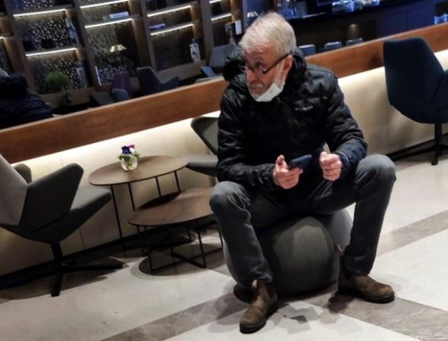 照片中,阿布正在以色列特拉维夫本古里安机场的VIP贵宾室候机。阿布上身穿着一件黑色外套,下身则是一件牛仔裤,下巴戴着口罩,时不时地瞥一会手机。让人感到吃惊的是,相比之前的自己,阿布的头发全白了,面容十分憔悴,整个人老了很多。这位亿万富翁,看起来很落寞。
