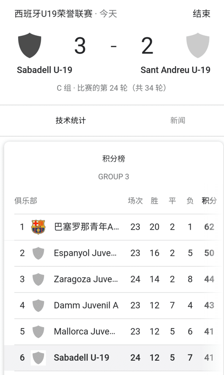 唯一美中不足的是何小珂没能率队赢球,最终1-1踢平了圣弗朗西斯科,积分榜落后榜首的巴萨多达24分。北京时间3月13日凌晨,年轻的国脚级球员何小珂再次迎来比赛,闪电立足U19顶级联赛,再次代萨瓦德尔U19A队首发出场,并且顺利帮助球队赢球,3-2击败了圣安德鲁,这是何小珂留洋后的正式比赛首胜。赛后,萨瓦德尔U19A队12胜5平7负,暂时以41分排名积分榜第6名,巴萨U19A队以62分排名第一。