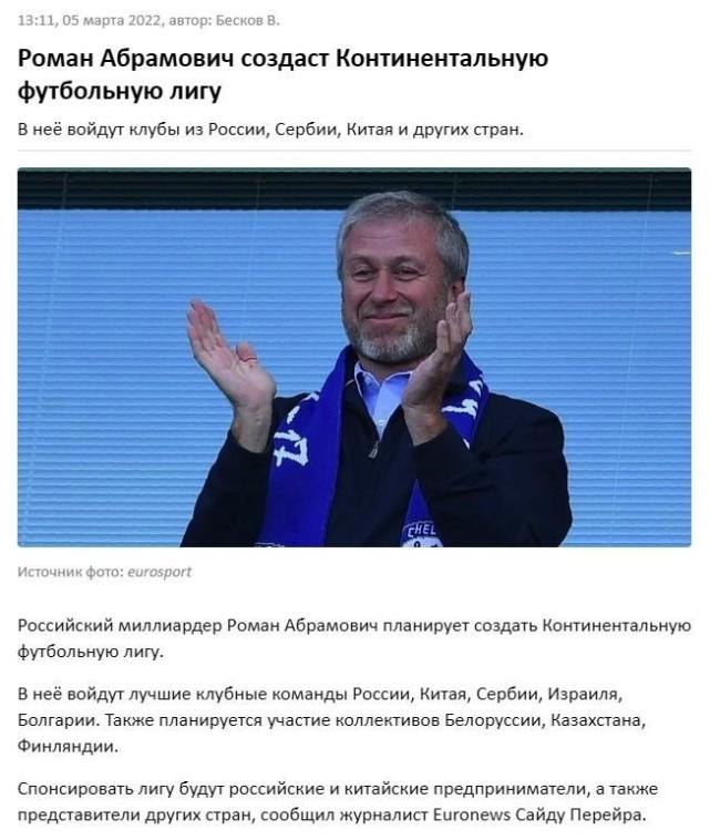 众所周知。国际足联和欧足联已经联合发表声明,将禁止俄罗斯的国家队和俱乐部参加他们旗下的所有赛事。未来很长一段时间,俄超俱乐部要想有国际比赛可踢,只能“另起炉灶”。而正在计划出售切尔西的阿布,确实有足够的财力和雄心,打造一个类似“欧亚大陆超级”的联赛。