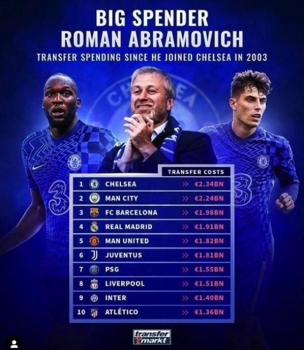 JRS直播网3月03日讯 凌晨,截止到2021年夏窗关闭后的数据可以看到,在阿布2003年成为蓝军老板之后,他一共在转会市场上投入23.4亿欧元,高居全球第一,连曼城、大巴黎等其他土豪队都自叹不如。而如今随着阿布的离开,蓝军未来的管理者能否像阿布如此热爱这家俱乐部,愿意为球队付出,确实是个不小的疑问。