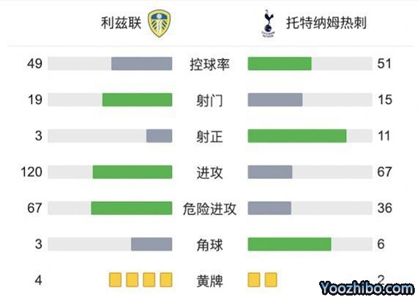 全场比赛结束,热刺4-0击败利兹联。
