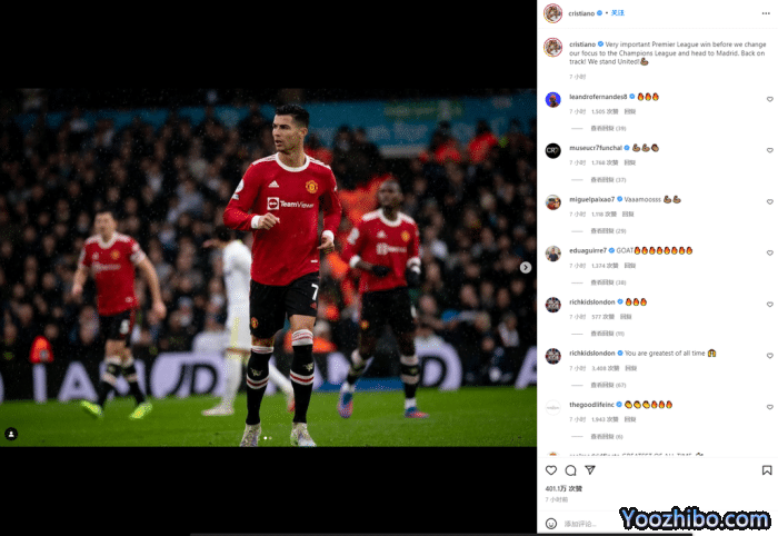 JRS直播网02月21日讯 C罗在Instagram上写道:“在我们把目光投向欧冠,并动身前往马德里之前,这是一场非常重要的联赛胜利。重回正轨!我们团结一致!”