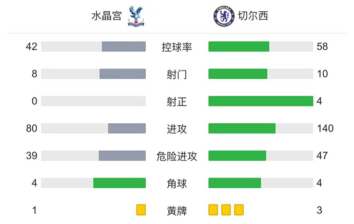 第91分钟,哈弗茨肘击犯规染黄。全场比赛结束,切尔西1-0水晶宫。