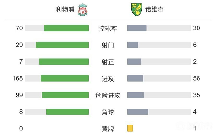 第47分钟,拉希察禁区外一脚远射,皮球蹭到马蒂普脚下折射入网,诺维奇1-0利物浦。