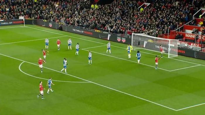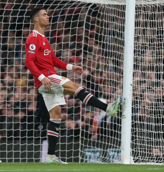 比赛开场后不久,C罗在左路截获布莱顿后卫失误的停球后,脚后跟将皮球做给桑乔,随后进行跑位。此时,曼联在门前共有布鲁诺·费尔南德斯、安东尼奥·埃兰加和C罗3个接应点,涵盖了前中后的落点,但桑乔却选择自己小角度射门,被门将拒之门外。桑乔重新拿到了落点,这次选择传球,然而后卫已经回防到位,将皮球彻底解围。对于桑乔单打独斗的做法,C罗非常不满。C罗先是高举双手表示遗憾,随后一脚踹向门柱,表达自己的愤怒。