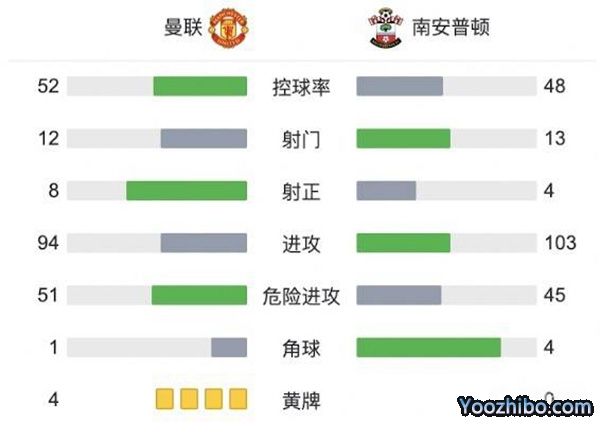 第21分钟,曼联取得领先,拉什福德接后场长传球带球至禁区后横传,桑乔射门打在回防的沃克-皮特斯脚上折射入网,曼联1-0南安普顿。