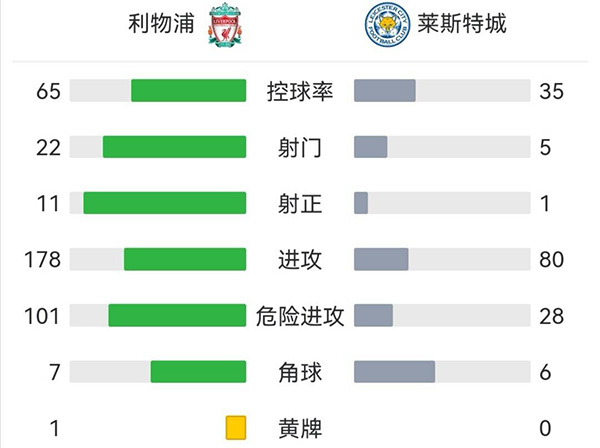 全场比赛结束,最终利物浦2-0击败莱斯特城。