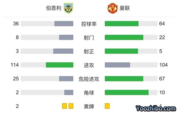 全场比赛结束,最终曼联1-1伯恩利,联赛两连胜遭终结。