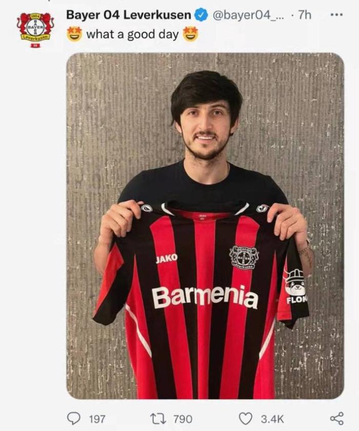 JRS直播网01月23日讯 北京时间官方消息,勒沃库森官方宣布与伊朗国脚阿兹蒙达成转会协议,阿兹蒙将在本赛季结束后加盟勒沃库森,双方签约至2027年。