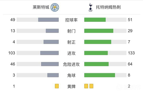 全场比赛结束,热刺客场3-2逆转莱斯特城。