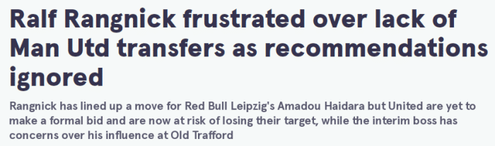 《镜报》表示,朗尼克本赛季的任务是帮助曼联获得下赛季的欧冠资格,上任之初他得到的许诺是会在冬窗有一定的空间来签约球员。不过现在情况似乎不是这样,曼联不愿意将转会权交给朗尼克,朗尼克认为自己没有得到俱乐部的足够支持。