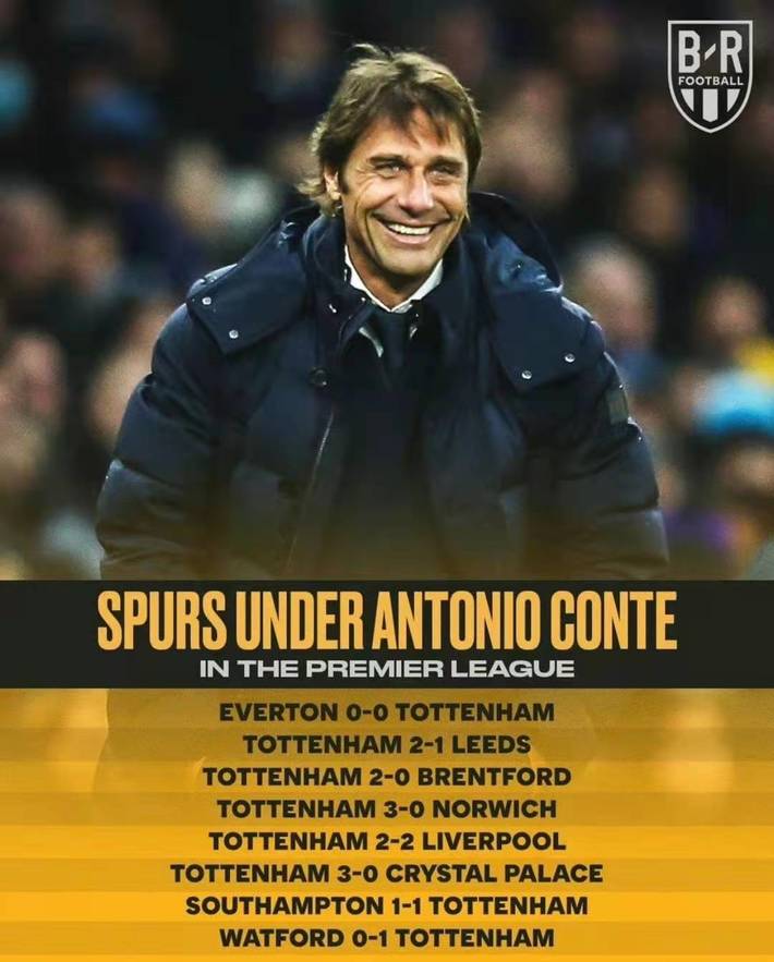据外媒统计,孔蒂执教热刺之后,球队在英超联赛中保持8轮不败,收获5胜3平的战绩。孔蒂继续刷新记录,成为了热刺队史首位8轮联赛保持不败的主教练。