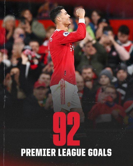 今天凌晨,曼联在英超联赛中3-1击败伯恩利,C罗贡献1传1射,现在他的英超生涯数据为92个进球和37个助攻。