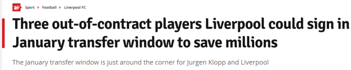 JRS直播网12月30日讯 ,英国媒体《利物浦回声报》列出了3位利物浦可以在冬窗关注的3位球员。这三人的合同都将在明年夏天到期,利物浦可以在1月与他们接触并预签合同。