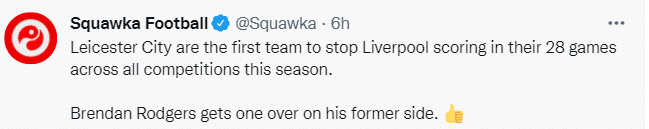 利物浦在此前的33场英超联赛中都取得了进球,上一次他们未能在英超进球已经是8个月前的事。