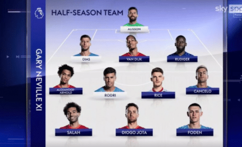 包括内维尔英超半程最佳阵的时候,前锋线上他选择的是萨拉赫、若塔和福登,并没有C罗的名字,C罗本赛季在英超打进7球,还有2次助攻。来到曼联初期表现非常强势,每场都进球,但近期表现相对一般。