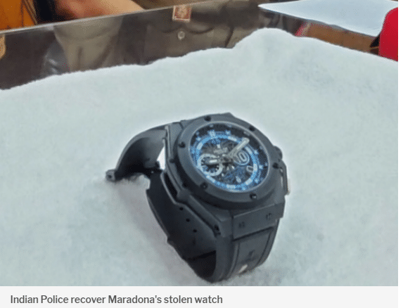 JRS直播网讯 12月12日《世界体育报》消息,印度警方宣布逮捕了盗窃马拉多纳定制手表的嫌疑人,手表已经被找到。