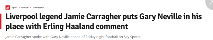JRS直播网12月11日讯 据英国媒体《利物浦回声报》报道,拉伊奥拉在此前接受采访时谈到了哈兰德的潜在下家,其中不包括曼联和利物浦,这引发了曼联名宿加里-内维尔和利物浦名宿卡拉格的互相调侃。