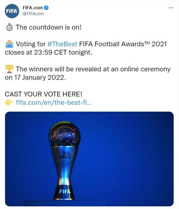 JRS直播网12月11日讯 消息,国际足联官方宣布本年度的世界足球先生投票明天早上6:59结束。