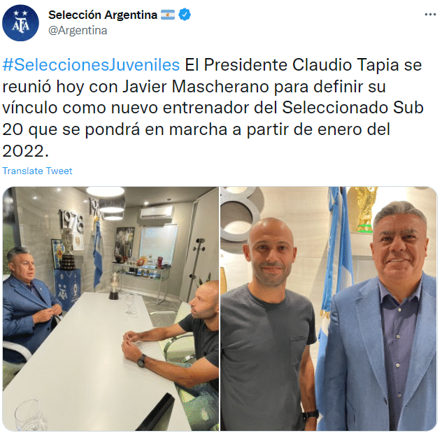 JRS直播网12月10日讯 据阿根廷足协官方消息,马斯切拉诺将从2022年1月开始担任阿根廷U20国家队主帅。