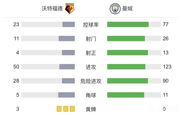 JRS直播网讯:北京时间12月5日1:30,英超第15轮,曼城客场挑战沃特福德。上半场开场后不久,福登助攻斯特林头球首开记录,随后曼城多次威胁对手球门,巴赫曼屡献精彩扑救,B席小角度破门扩大比分;下半场福登劲射击中立柱,B席右路内切兜射再入一球,胡安-埃尔南德斯补射扳回一城。最终,曼城3-1沃特福德。
