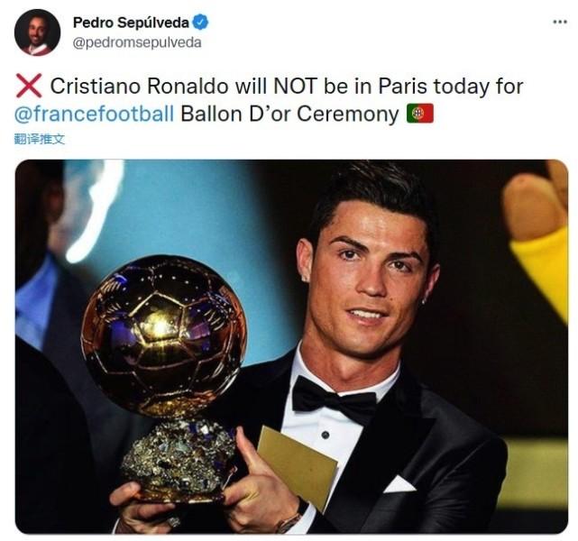 JRS直播网11月30日讯,来自葡萄牙知名记者Pedro Sepúlveda在个人社交账号上透露的消息,葡萄牙巨星C罗,将确定不会出席今晚的金球奖颁奖礼。Pedro Sepúlveda是受邀参加今年金球奖颁奖典礼的葡萄牙记者,他的消息无疑具有相当高的可信度。