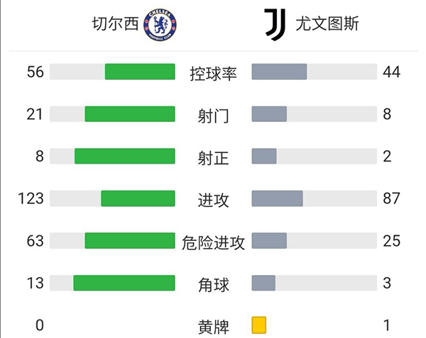 全场比赛结束,切尔西4-0尤文图斯。