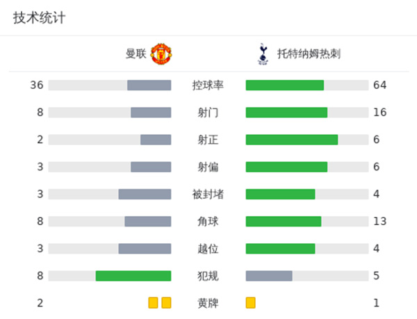 关键事件: 第3分钟,曼联反击,拉什福德得球后在禁区内横向带球被断,霍伊伦直接迎球左脚怒射,皮球直挂死角,曼联闪击破门,打破僵局,曼联1-0热刺!