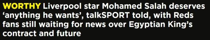 JRS直播网11月20日讯 近日英超名宿帕洛尔在接受talksport采访时表示,萨拉赫配得上任何合同。