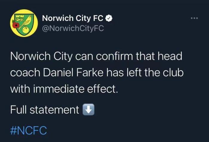 本赛季诺维奇的战绩依然不佳,尽管法尔克在昨天刚刚带领球队2-1战胜布伦特福德取得赛季首胜,但依然难逃下课的命运。