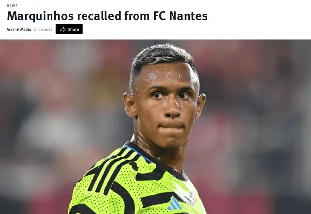 JRS直播网01月13日讯 ,阿森纳官方宣布提前召回租借在南特的20岁巴西籍边锋马尔基尼奥斯。