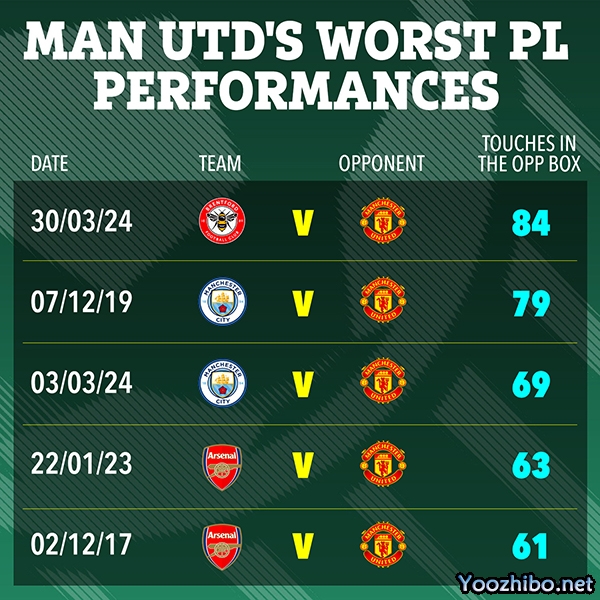曼联在比赛中被「小蜜蜂军团」31次射门,这让球队最近4场比赛被射门次数突破百次大关,达到惊人的106次,曼联还被对手在禁区触球85次,创造2008年以来第二高的纪录。
