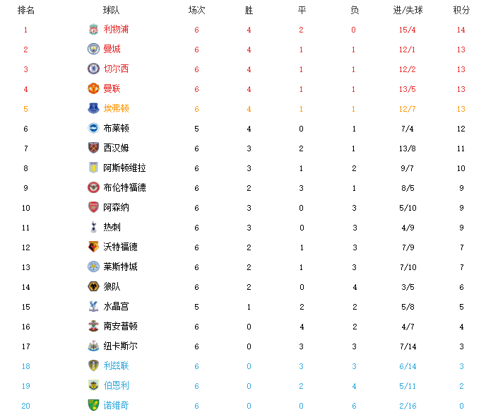 JRS直播网9月27日讯 ,英超第6轮北伦敦德比落下帷幕,阿森纳主场3-1大胜热刺,收获三连胜,从开局的三连败到如今的三连胜,还大胜了死敌热刺,枪手彻底崛起。本轮英超只剩下布莱顿和水晶宫的比赛没有开始,接下来我们看看英超最新排名: